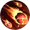 Triệu hồi Vẫn Thạch bốc cháy rơi xuống, lăn về phía địch cách bản thân xa nhất, gây 3 lần 81% sát thương phép và hiệu quả đánh lùi. Nơi vẫn thạch lăn qua sẽ để lại con đường lửa, gây cho mục tiêu địch trên đó 5 lần 81% sát thương phép, mỗi lần gây sát thương có 30% xác suất kèm 1 tầng hiệu quả Thiêu Đốt